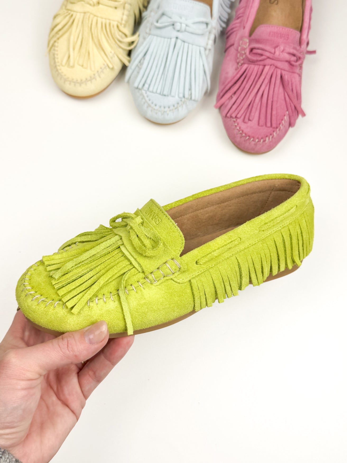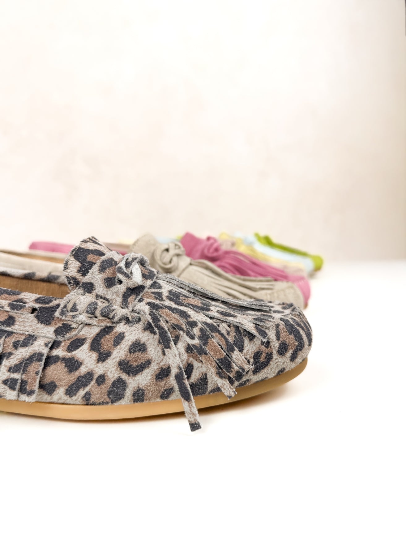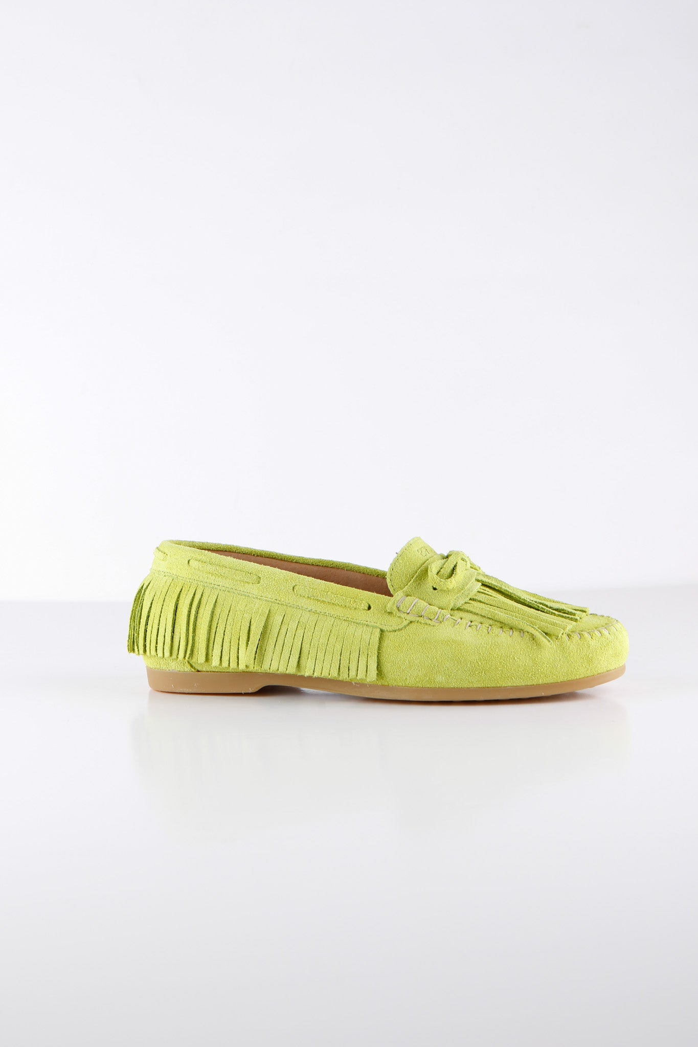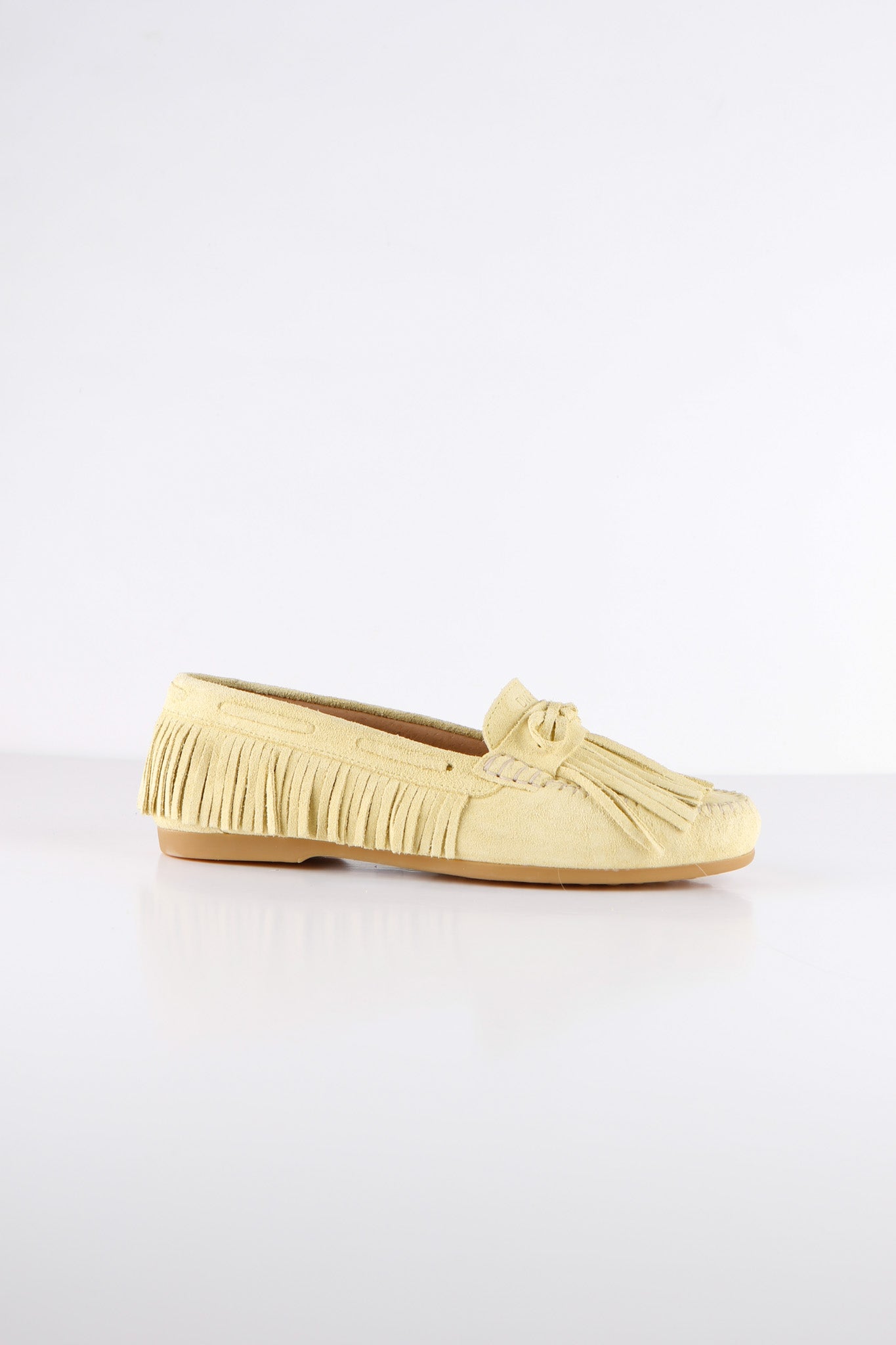 Deze supertrendy mocassin in de kleur champagne met fringes is razend populair! Dit is toch de perfecte schoen voor de zomer? Mix and match met kraaltjes of een gekleurde veter.