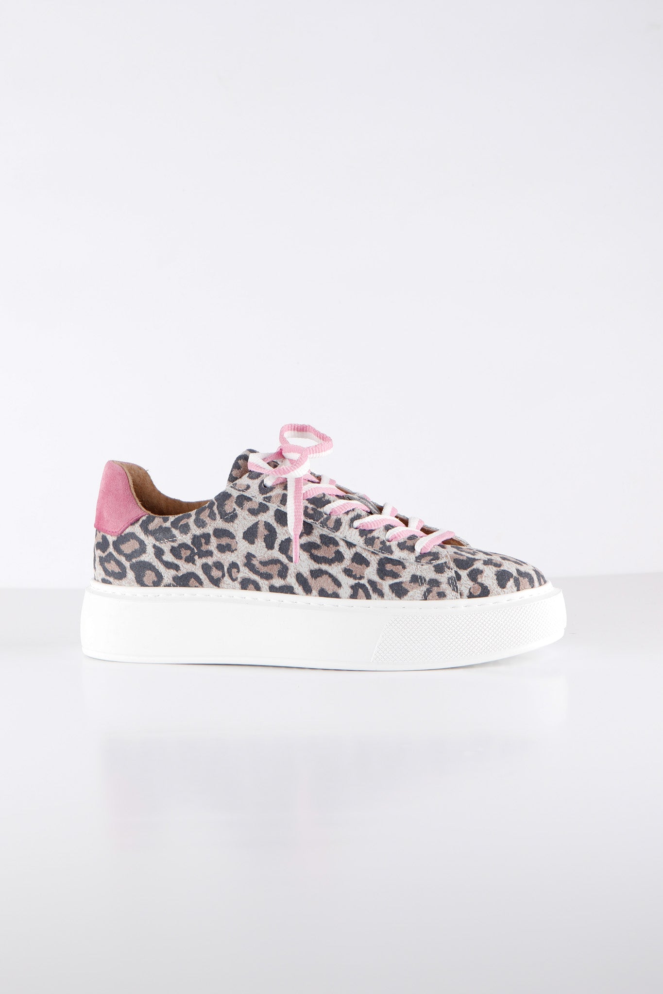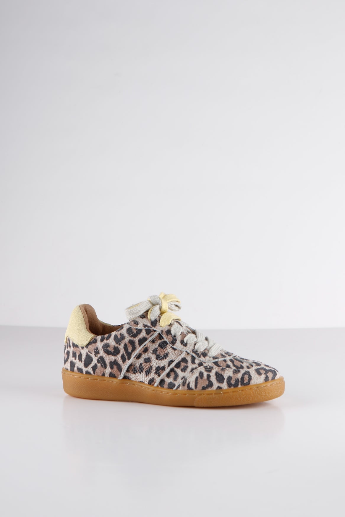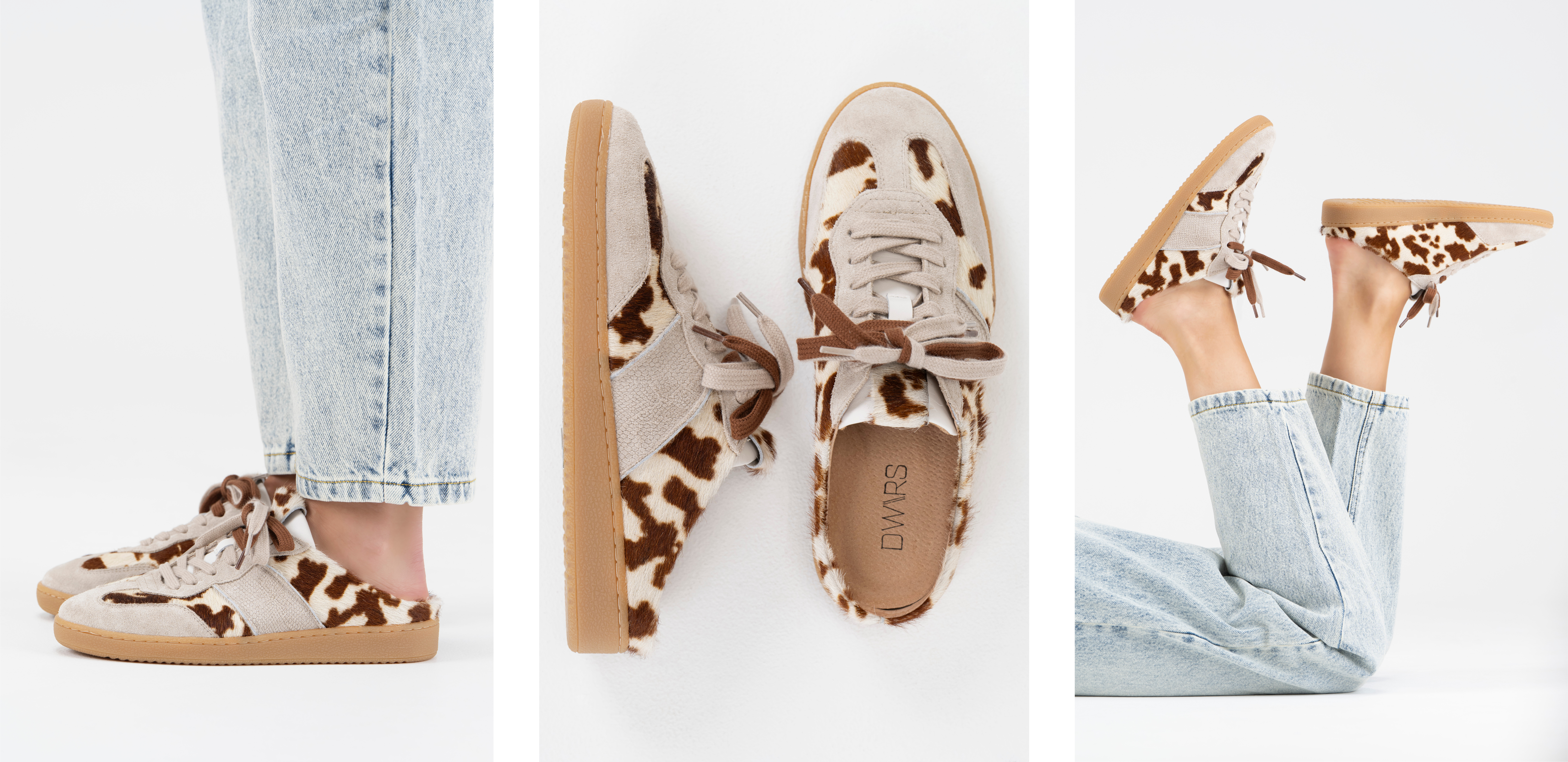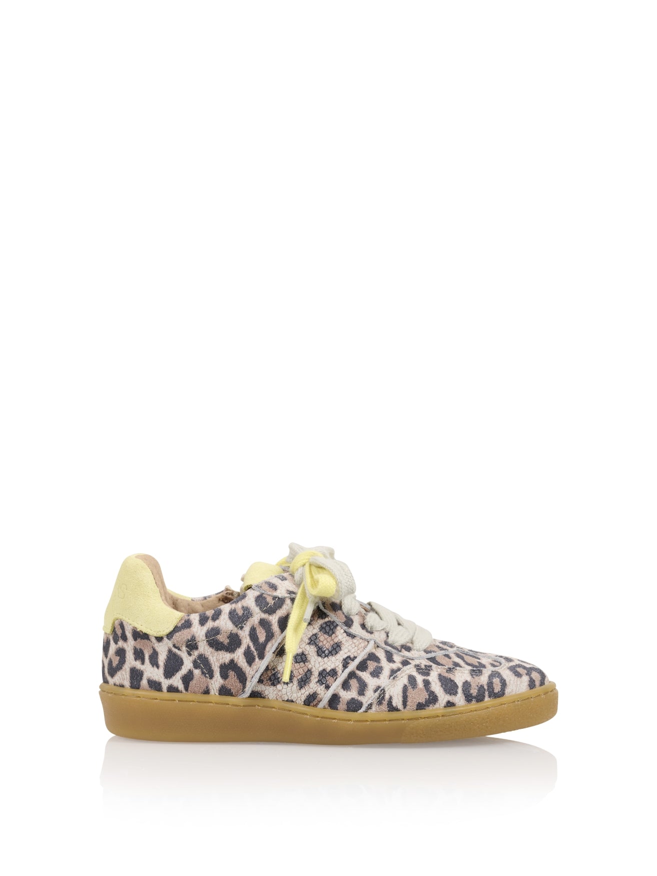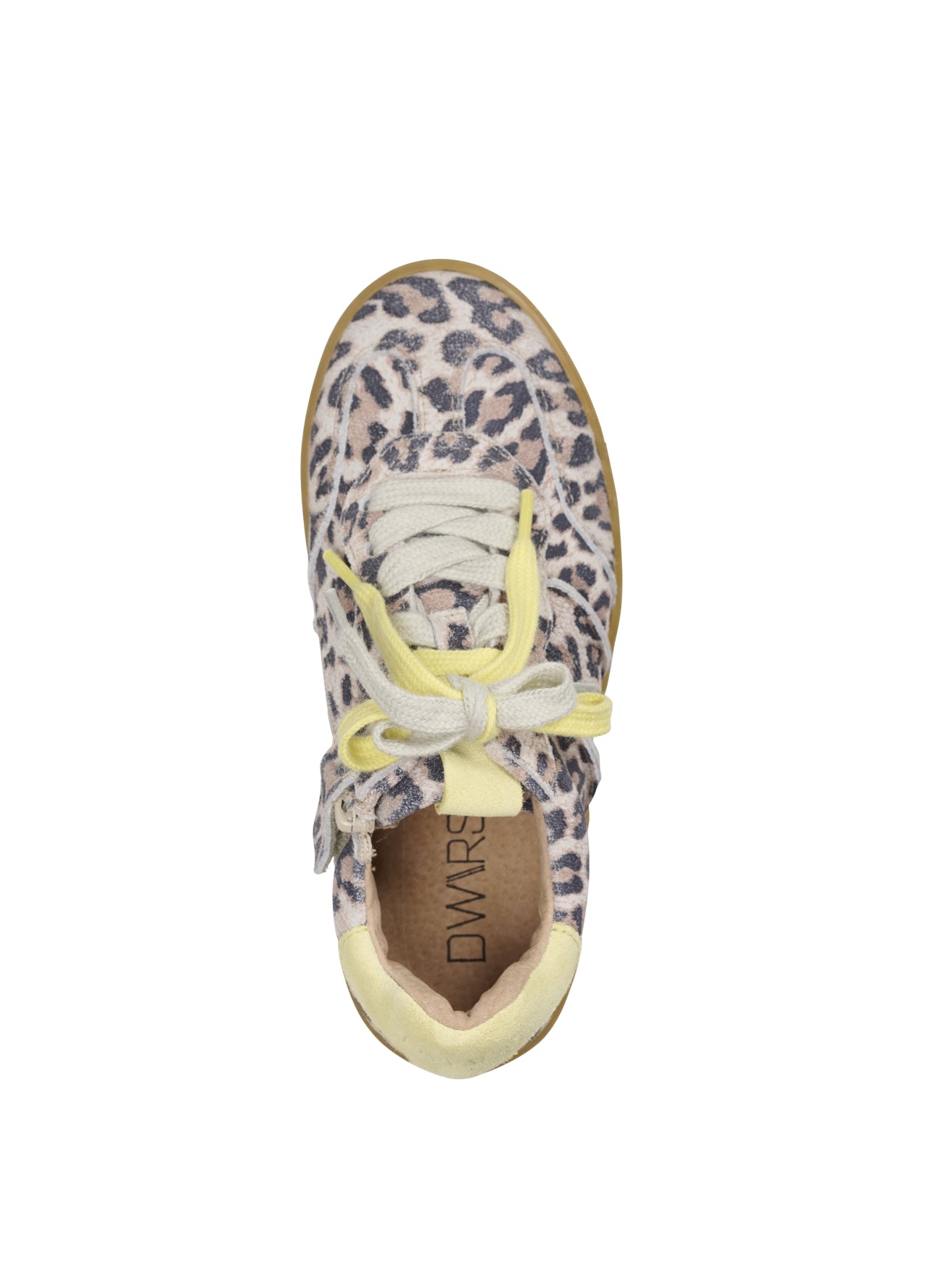 De Jupiter is terug in de trendkleur butter yellow. De veters lopen door op de hak, dus opvallen doe je dan ook zeker! Ook geeft het hair-on printje de sneaker een speels en luxe accent.
