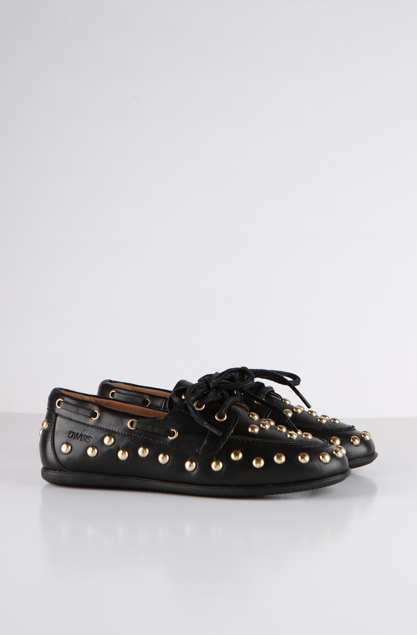 The Latty moccasin with its large studs is a definite trend this season! It has a flat sole with drawstrings at the front for a tighter fit. The Latty is made of leather on the outside and also features a comfortable leather interior, making it feel like walking on air. This shoe looks great with linen trousers or a long dress.