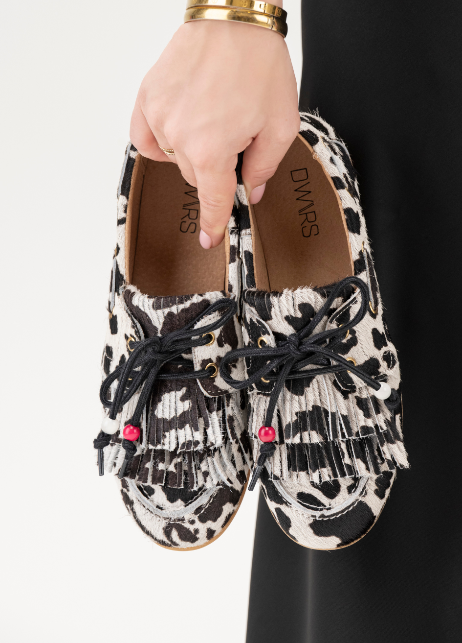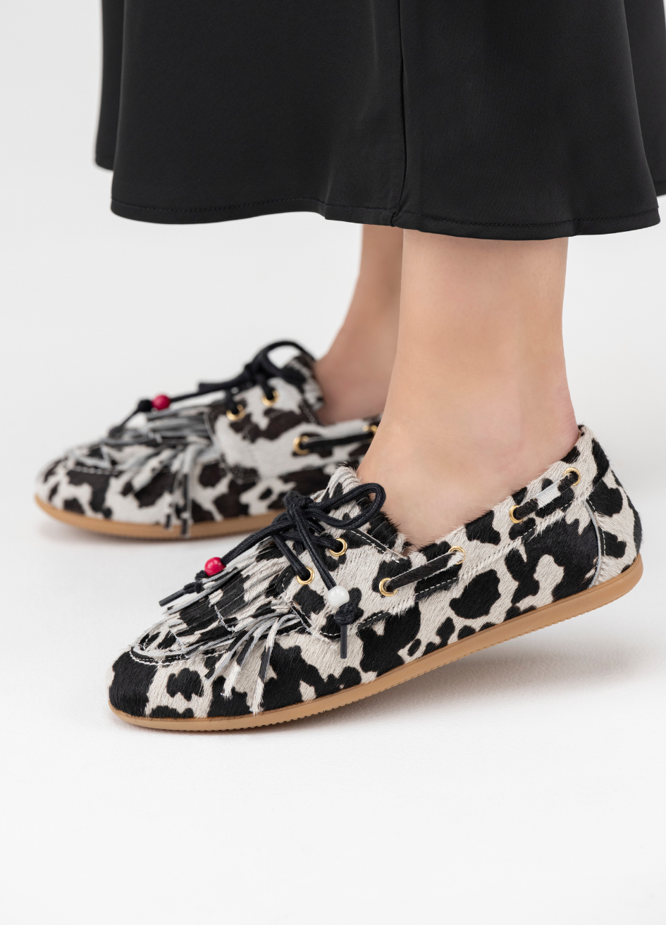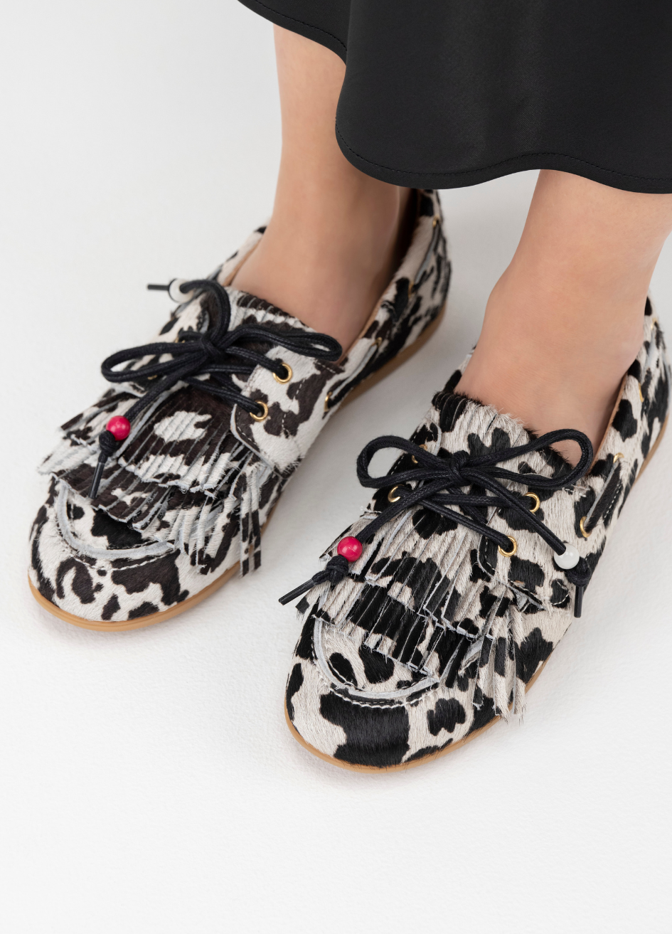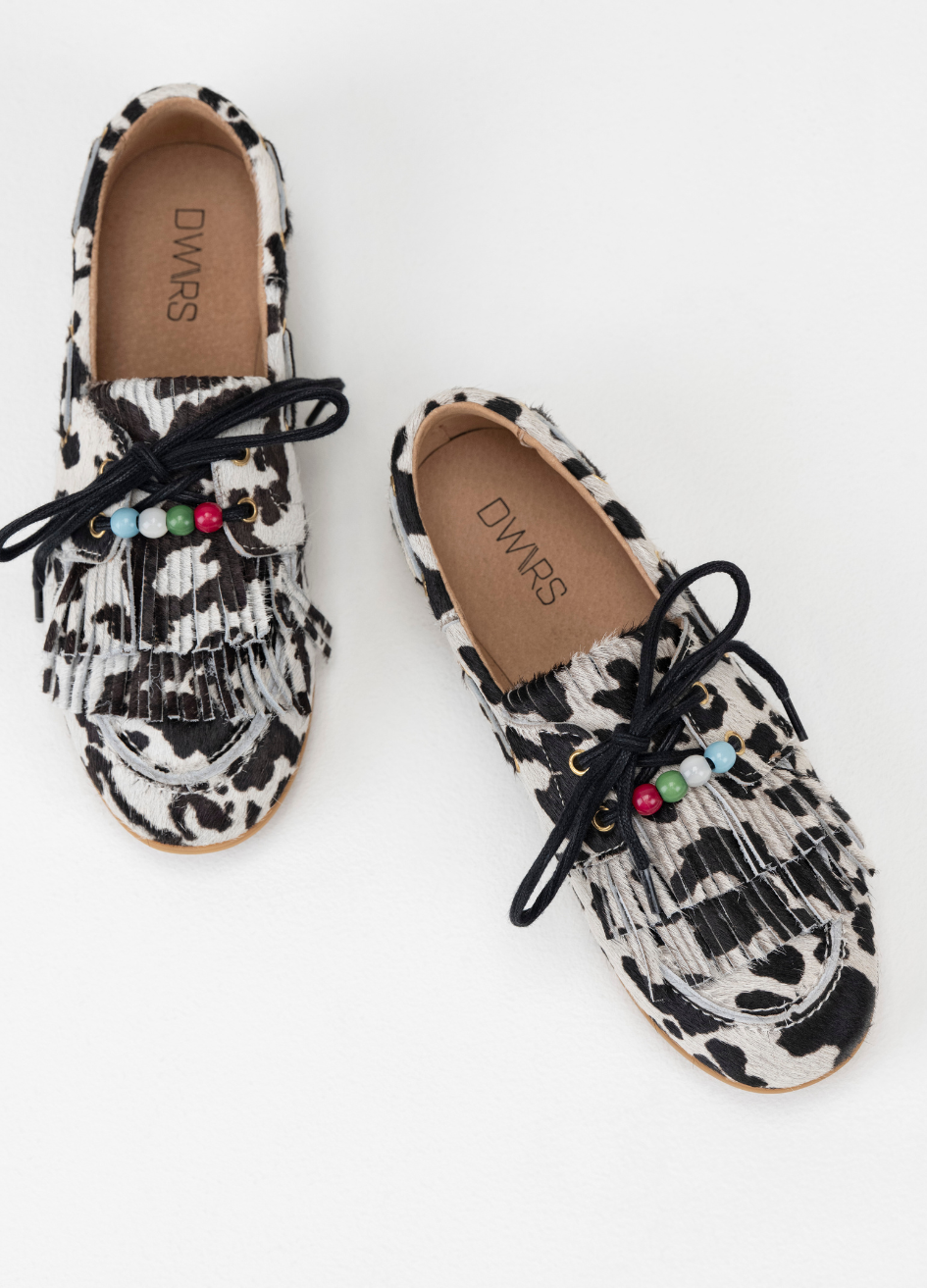 PRE ORDER LATTY COW - Moccasins | White/Black