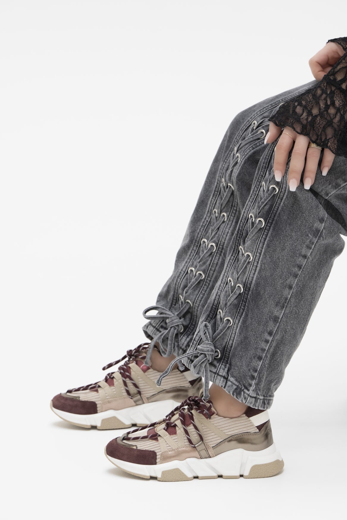 The all-time favorite Los Angeles sneaker is back at DWRS this season! These sneakers are a little more special thanks to the laces that run across the toe. Perfect for women with an eye for detail. This sneaker is made of suede and corduroy on the outside and completely leather on the inside.