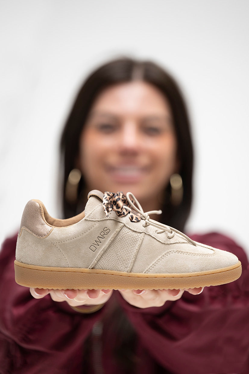 These awesome sneakers with low soles are a definite trend! The Poona sneakers with double laces are a must-have for any outfit. The sneaker is made of suede and leather on the outside and leather on the inside.