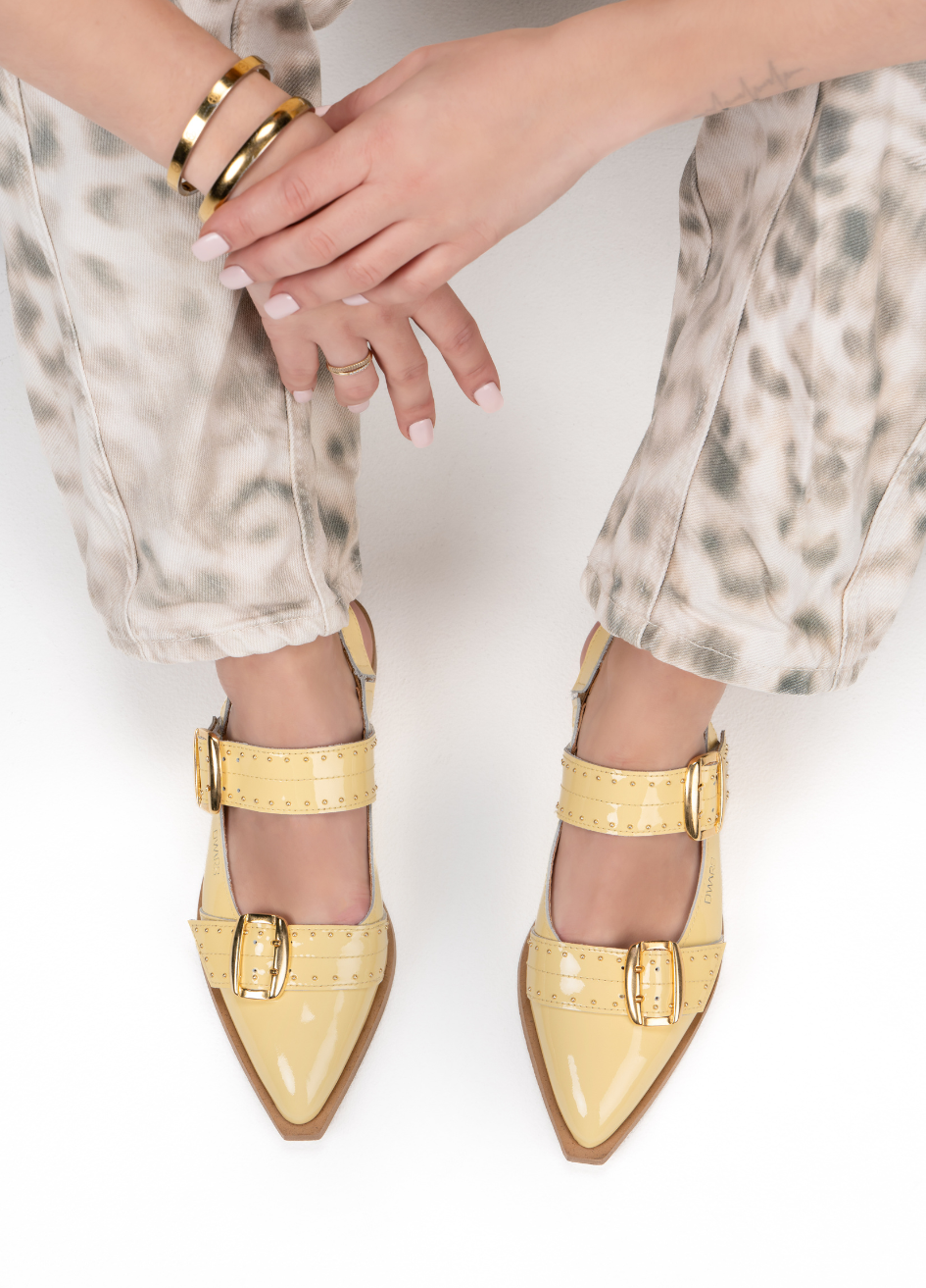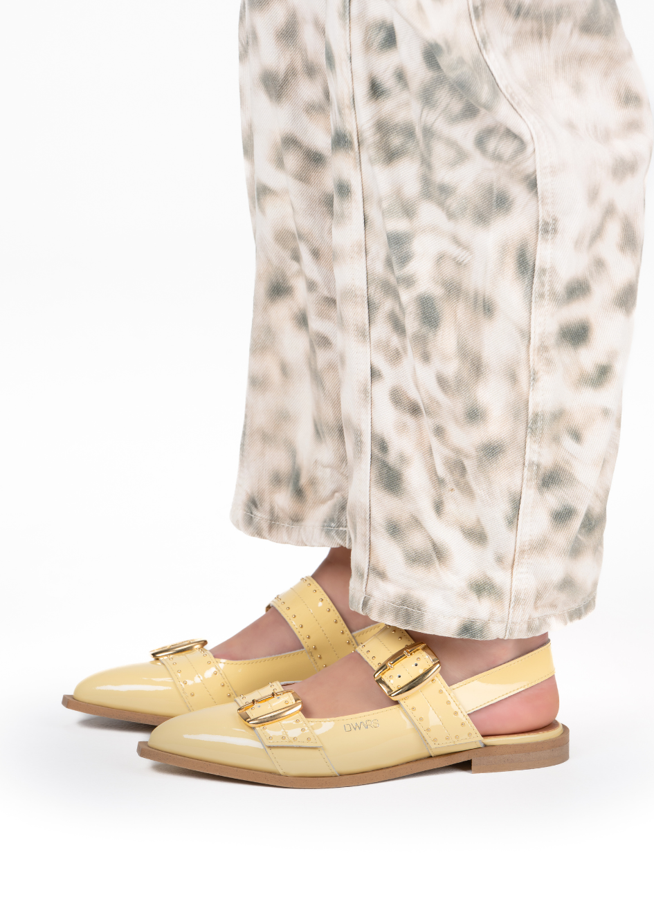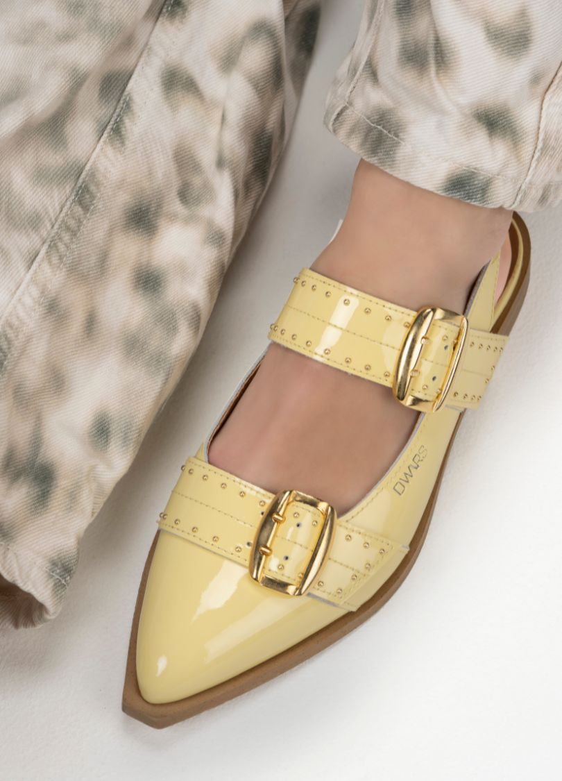 Deze stijlvolle slingbacks kun je op eindeloze manieren combineren. De Port Isabel heeft een spitse punt en twee opvallende gespen met studs waardoor de schoen comfortabel zit. De slingback is aan de buitenkant gemaakt van lak leer en aan de binnenzijde gemaakt van leer.