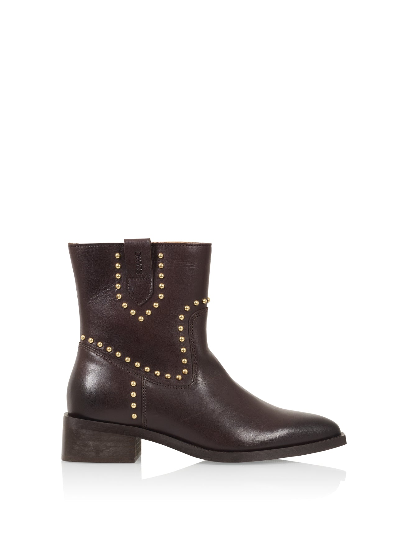 Een trend die we komend seizoen ook weer terug zien zijn de korte enkellaarsjes in de trendkleur donkerbruin. De gouden studs op de laars geven meteen een stoere look. Combineer de Lyne enkellaars met een jurk of rokje en je bent ready to go!