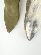 Olijfkleurige enkellaarsjes suede met blokhak