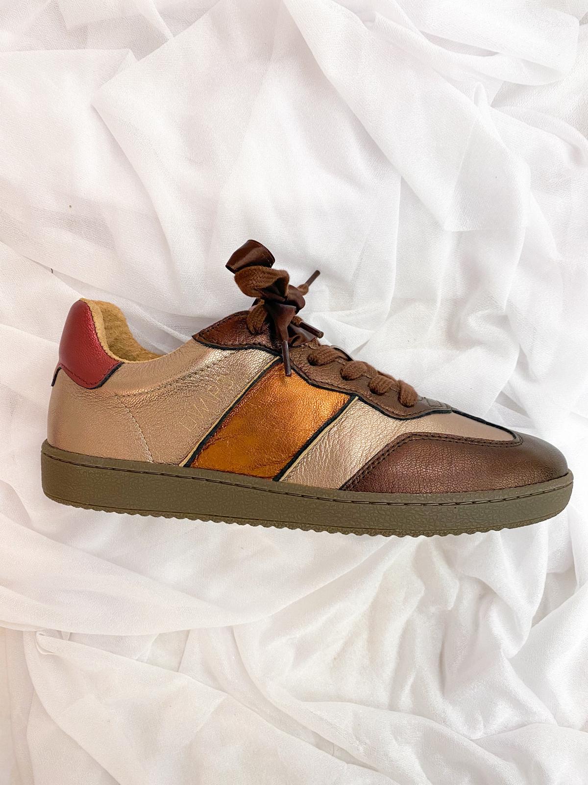 Deze metallic sneakers zijn toch te gaaf? Met de Poona metallic in de kleur bordeaux/stone ben je meteen klaar voor de feestdagen. De sneaker is aan de buitenzijde gemaakt van metallic en aan de binnenzijde gemaakt van leer.